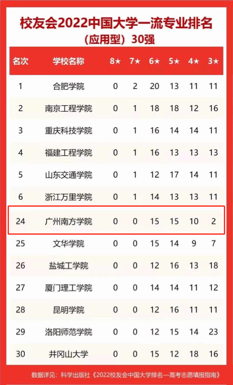 2022年3月30日,艾瑞深校友会发布2022中国大学一流专业排名、2022中国大学各专业类一流专业排名。“校友会2022中国大学一流专业排名(应用型)”共收录公办、民办本科应用型高校720所。我校以15个六星级专业、15个五星级专业位列该榜第24名(即前3%),名列广东同类院校第1。