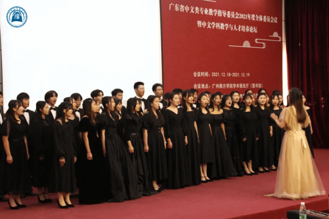 彭玉平会长就本次大会基本议程进行了总结。他认为,参与本次研究会的同仁们具有宽广的眼界,对各个领域的研究十分丰富。他相信通过各位同仁的不断努力下,广东省中国文学研究一定会取得不一样的成果,也会获得更多的关注。随后,文学与传媒学院风雅合唱团为本次大会献上合唱名曲《彩虹》,寓义广东省中国文学界将有彩虹般美丽的明天。在歌曲的余音中,广东省中国文学学会2021年会暨中国文学研究与教学研讨会正式落下帷幕。
