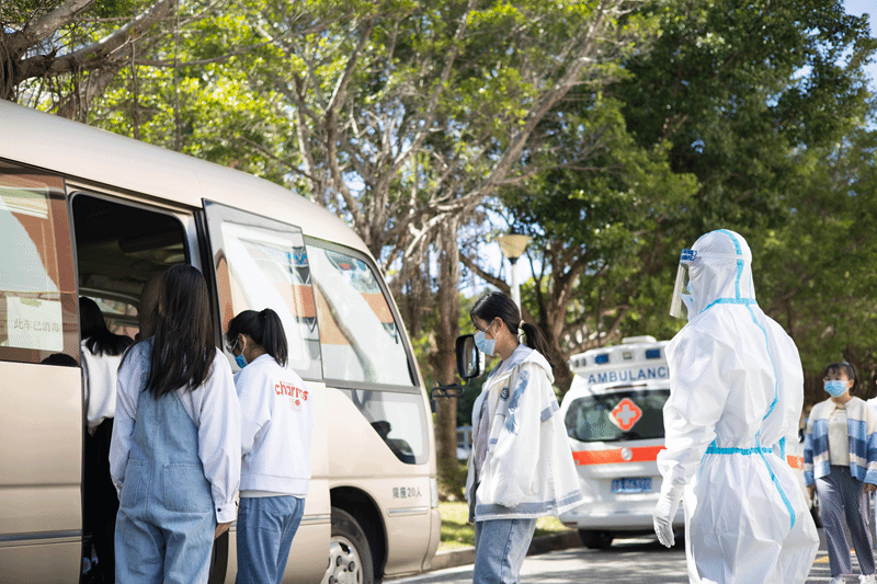 此次演练旨在提高学校师生疫情防控和遇突发状况的应急处置能力。演练地点在第五教学楼104课室,采取情景模拟与现场演练相结合的方式,从接到从化疫情防控专班电话告知我校有一例疑似新冠疫情病例展开。演练中,学校办公室接到信息后,第一时间向学校疫情防控领导小组组长报告,并启动应急处置预案。按应急处置流程,疫情防控工作指挥部成员来到疑似病例所在教室,进行信息初排,派出志愿者前往该病例隔壁宿舍,引导相关人员接受核酸检测。同时,医务人员将疑似病例带往隔离间,开展流行病学调查并作核酸检测,后登上救护车转运隔离。教室内,所有师生接受流行病学调查,并分组前往核酸检测点进行核酸检测,后登上中巴车前往隔离点隔离。最后,物业人员对该教室进行消毒及封闭管理。