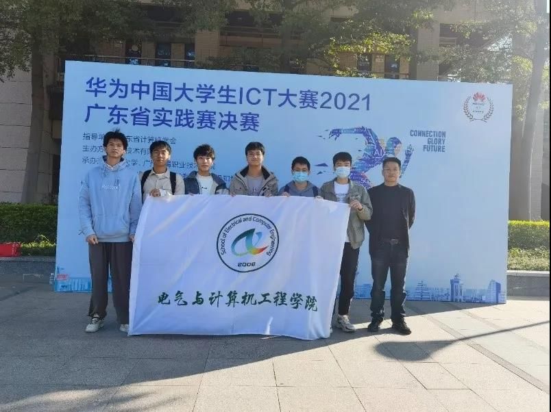2021年11月13-14日,华为中国大学生 2021 年 ICT 大赛广东省实践赛本科组决赛在暨南大学番禺校区顺利落幕,电气学院学生候政瑒、林梓彬、刘子满(云赛道),简振丞、黄悦、陈锡振(网络赛道)在张鉴新老师指导下,分别荣获广东省赛三等奖和优胜奖。