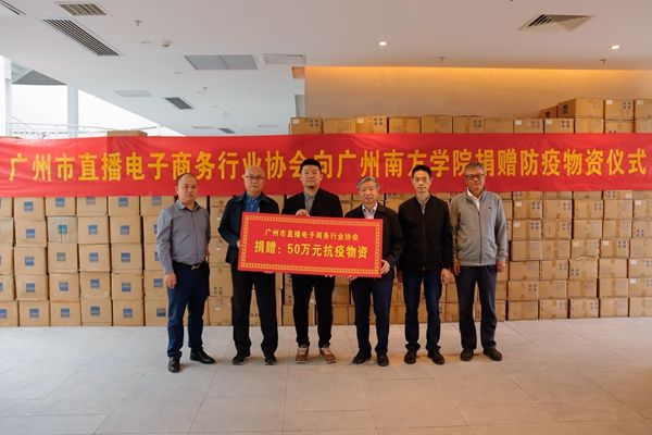 活动现场,李建超书记代表学校接受50万元捐助支票,并对广州市直播电子商务行业协会此次捐赠表示感谢。据悉,捐赠物资包括酒精棉片、消毒液、抑菌健康套装等。