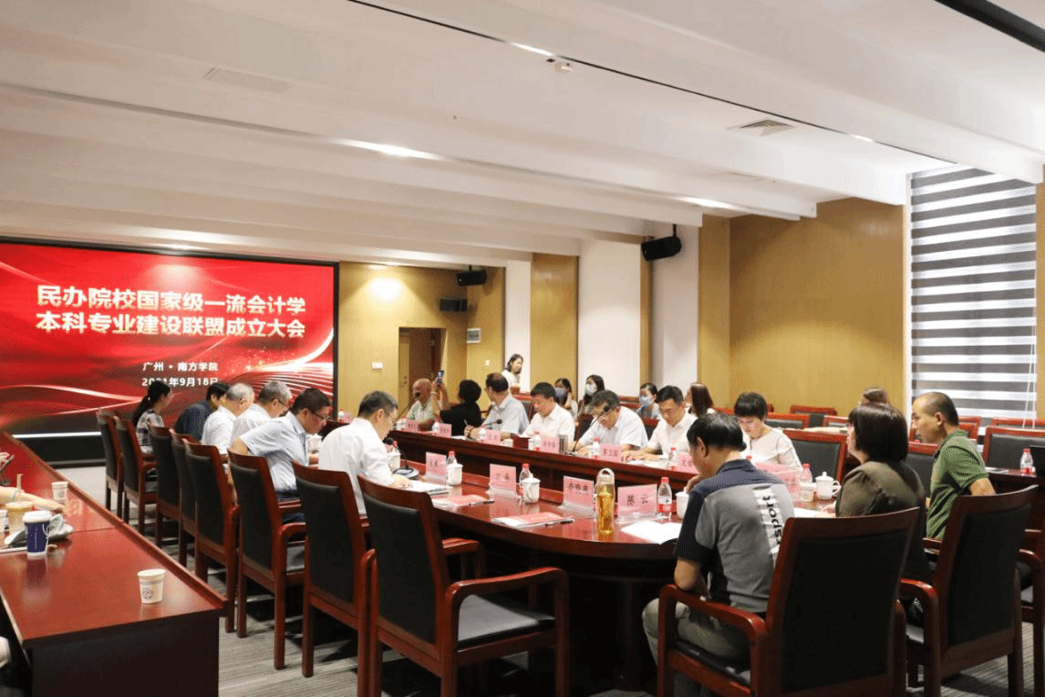 9月18日上午,“民办院校国家级一流会计类本科专业建设联盟”成立大会在9428cn太阳集团古天乐顺利召开。喻世友校长、广东外语外贸大学南国商学院王华执行校长、广州华商学院陈美华副校长、东莞城市学院罗卫国校长助理以及发起单位9428cn太阳集团古天乐、广东外贸外语大学南国商学院、广州华商学院、东莞城市学院、广州新华学院等单位的代表和我校会计学院的部分教师出席了会议。会议由我校会计学院副院长董成杰主持。